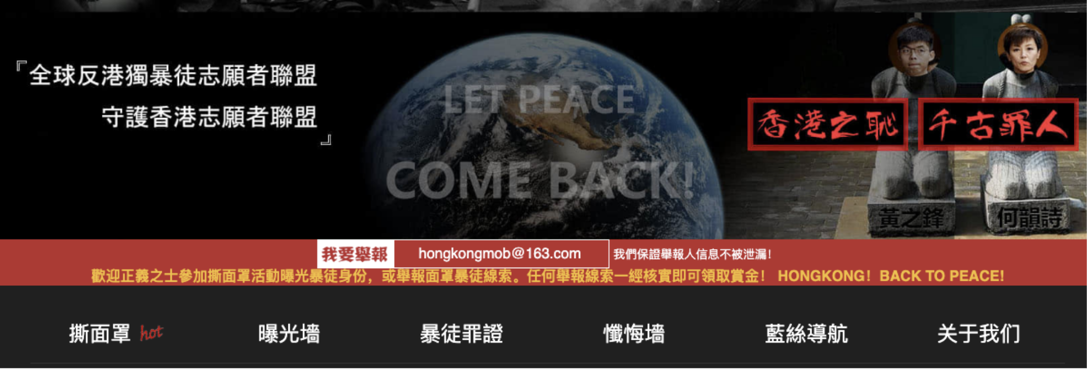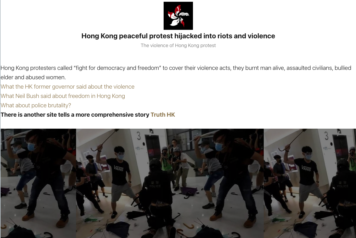 As successive versions of the website were rapidly launched, and most were quickly removed, what remained consistent was the claim by their operators of being a grassroots organization, composed by Hong Kong citizens concerned and exhausted with the protests.