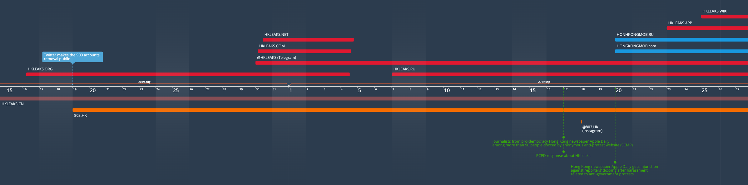 3. HKLEAKS was an artificial campaign created and conducted by the Chinese government, or an organization on its behalf (with some possible engagement by organic, sympathetic online communities). While the latter may also include an organization or governmental entity in Hong Kong, the difference between this hypothesis and #2 is a direct responsibility of the PRC on the generation and conduction of the operation.