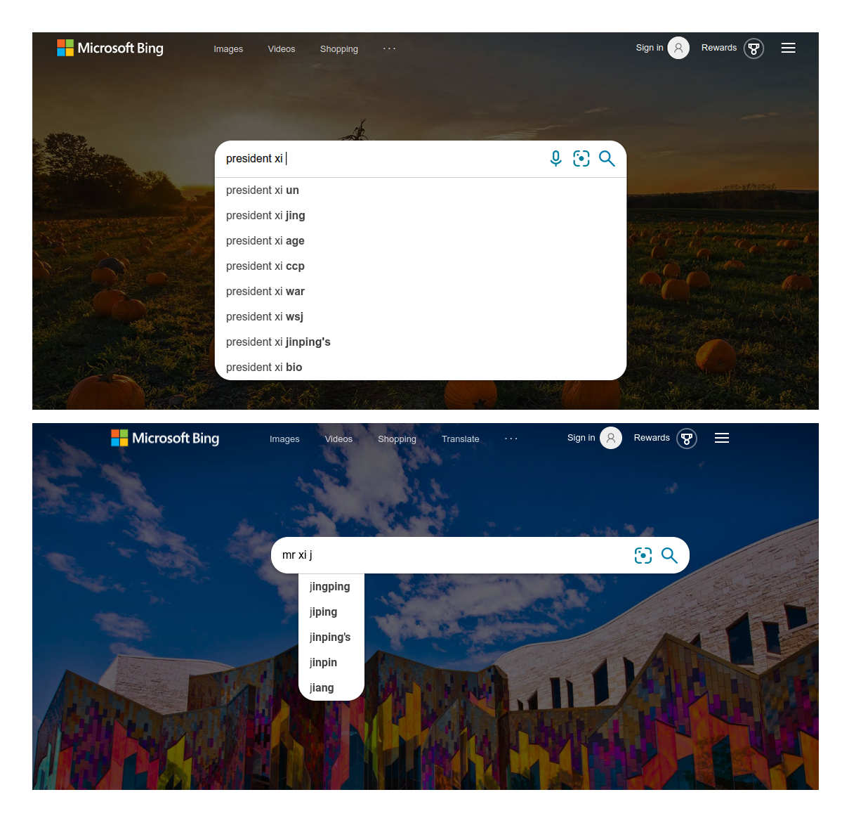 However, even if this mechanism played a role in explaining the behavior that we observed, it would not seem to be a complete explanation. While Bing’s autosuggestion censorship may effectively hide sensitive political names such as those of dissidents from Chinese users, it also has a second purpose which is to hide sensitive suggestions concerning Communist Party leaders. While autosuggestion censorship might prevent a Chinese user searching for “Xi Jinping” from learning about negative narratives surrounding the paramount leader such as the Winnie the Pooh mockery, it would not generally prevent a user from searching for Xi Jinping in general. Thus, this hypothesis seems unable to explain the global autosuggestion censorship of any reference to Communist Party leaders such as Xi Jinping.