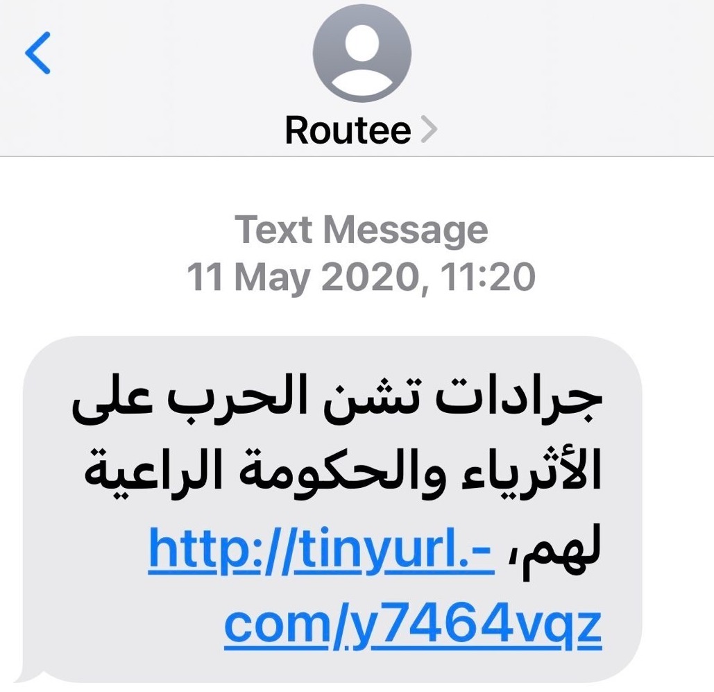 We identified the following SMS message on Jaradat’s phone containing a link to the Pegasus spyware: