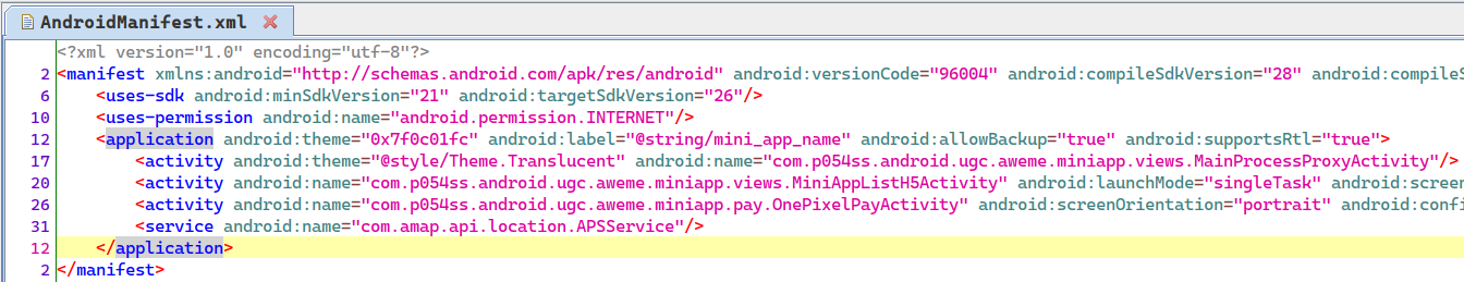 • Douyin: android:versionCode=”960″ android:versionName=”9.6.0″