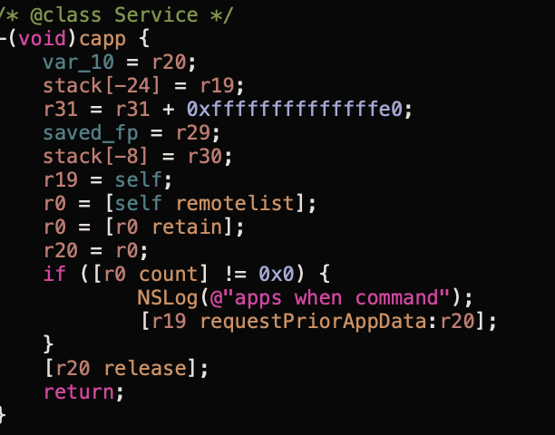 The other method called by the timer loop, capp (Figure 8), issues a request to the C2 server, again using the remotelist method, to request a list of applications from which the operator wishes to exfiltrate data.