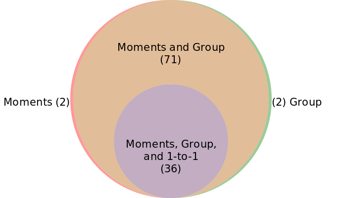 On November 15, we tested images previously found censored on WeChat during the 709 Crackdown and on the days surrounding Liu Xiaobo’s passing. Together this dataset comprised 128 images. We found that 111 of these images were still censored on some feature on WeChat. We found that 36 out of 111 images were filtered in 1-to-1 chat, and each of these were also filtered in group chat and on Moments (see Figure 4). We also found that 107 of the 111 images were filtered on both group chat and Moments, with 2 images being filtered only on group chat and another 2 images being filtered only on Moments. This finding suggests that, while the image blacklists for group chat and Moments are largely identical, the reduced filtering on 1-to-1 chat is an indication that WeChat perceives 1-to-1 chat as less of a risk for sensitive conversations due to its more private nature.