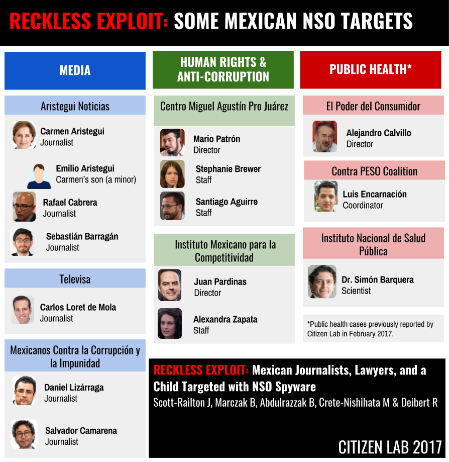 - The targets were working on a range of issues that include investigations of corruption by the Mexican President, and the participation of Mexico’s Federal authorities in human rights abuses.