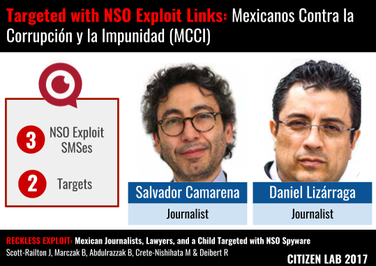 Shortly after Mexicanos Contra la Corrupción y la Impunidad (MCCI: Mexicans against Corruption and Impunity) was founded, Salvador Camarena and Daniel Lizárraga received text messages containing links to NSO’s Exploit Framework.