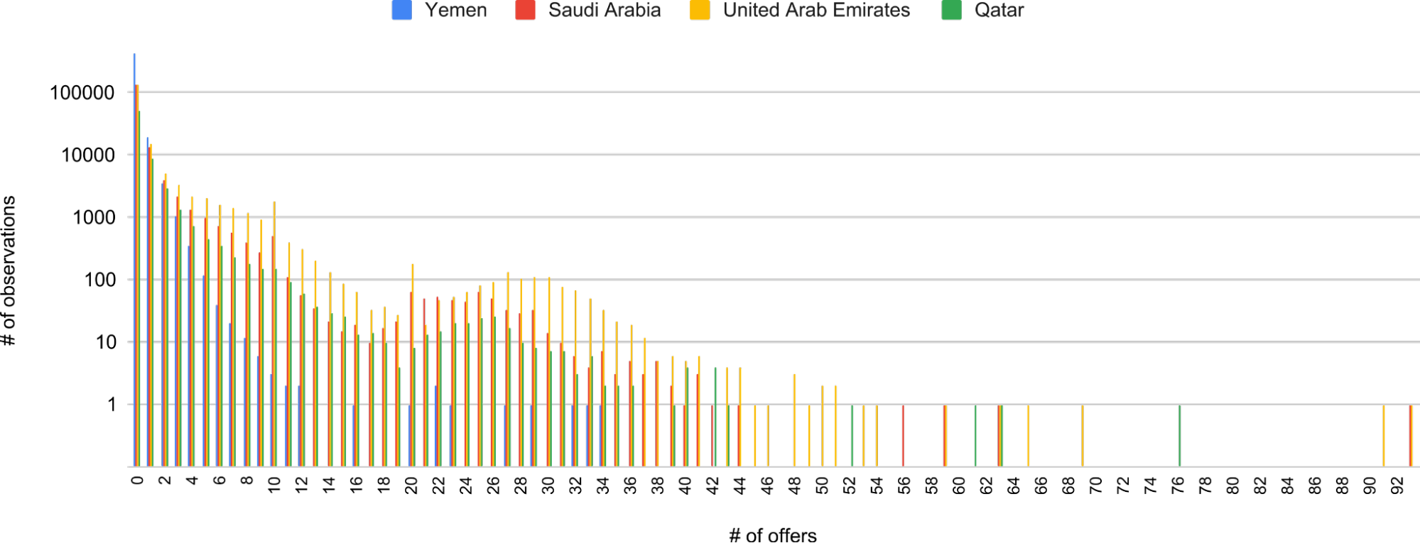 Figure 3: Histogram of the numbers of offers per region.