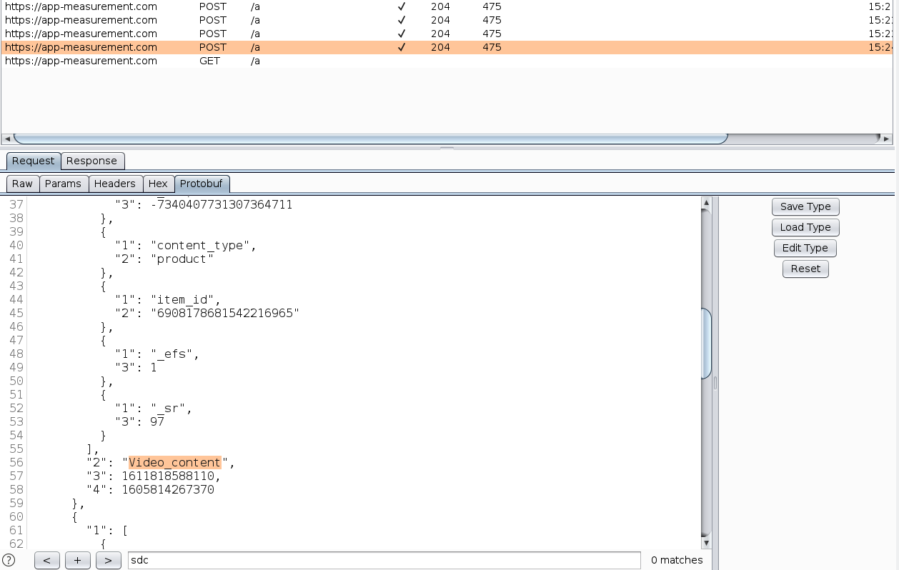 2. From captured traffic, identify interesting data, such as personal information, device identifiers, program executables, and encrypted strings.