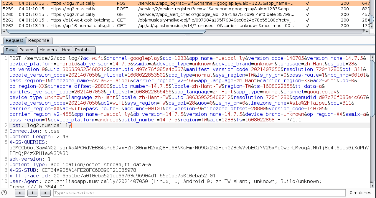 ASPI’s research speculated that the TikTok Android app could collect keystroke data and suggested it may be obscured by the app’s custom encryption. However, the researchers were not able to decrypt the encryption algorithm and could not confirm if the collection was taking place. Assuming the “custom encryption” they mentioned is what we found and called “ttEncrypt” (see section below), we can confirm that keystrokes were not encrypted and sent using ttEncrypt. We did not conduct further research into whether TikTok collected keystroke data.