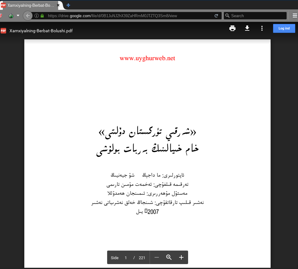 On March 10, 2017 we identified a fake Google login page on the domain drive-mail[.]info. If credentials were into the page the user would be redirected to a document in the Uyghur language on Google Drive. This document is publicly available from the World Uyghur Congress website. Google Drive metadata on the document shows that it was uploaded on March 8, two days before it was used as a decoy.