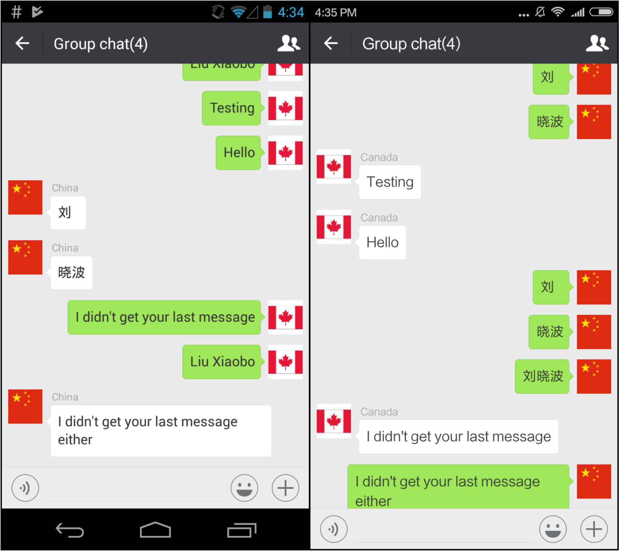 | Language | Group Chat | One-to-one chat |